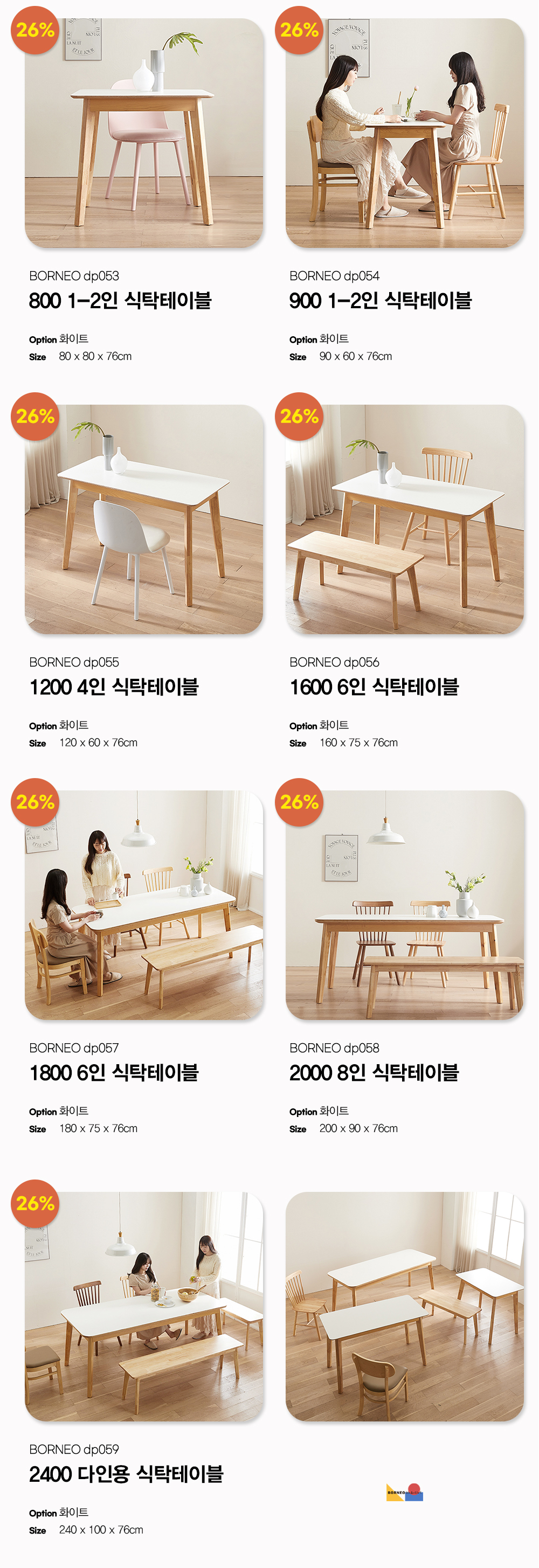 보루네오 엘리브 원목 식탁 테이블