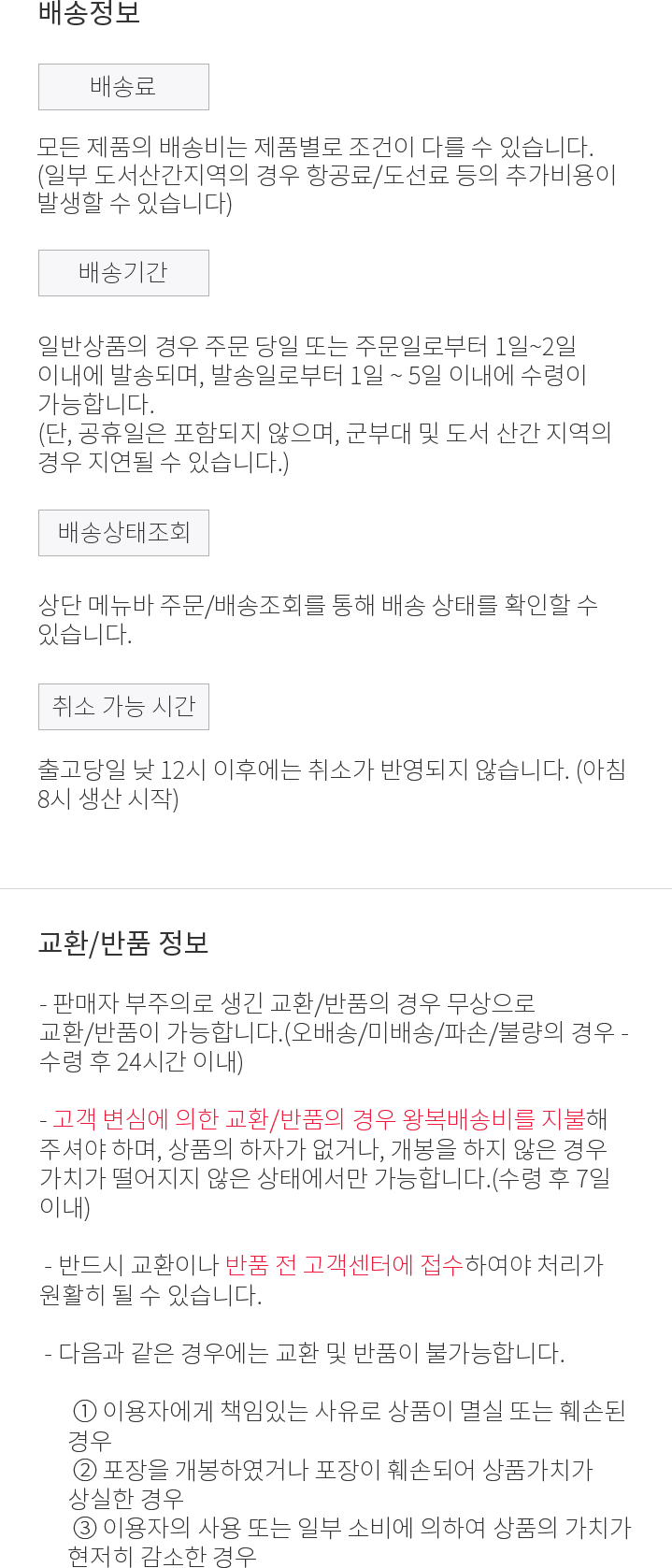 - 배송비 [판매자정책] 무료배송 (지역별 상이)